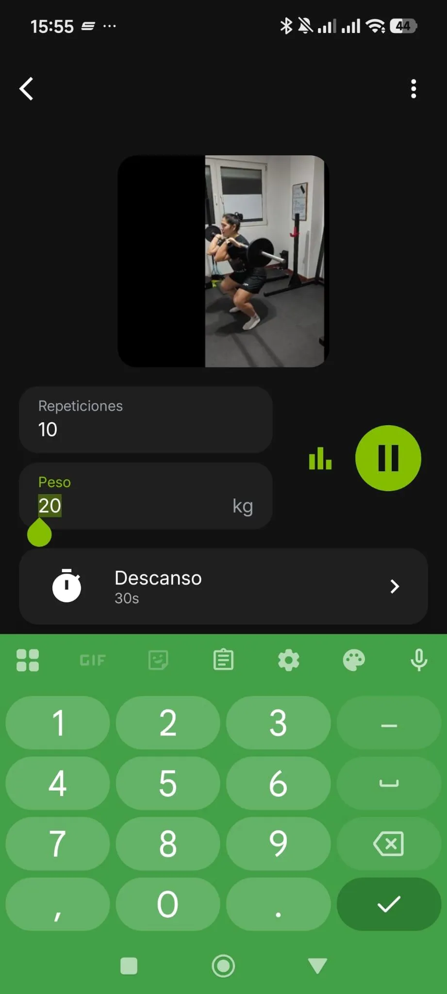 pesos utilizados en cada ejercicio