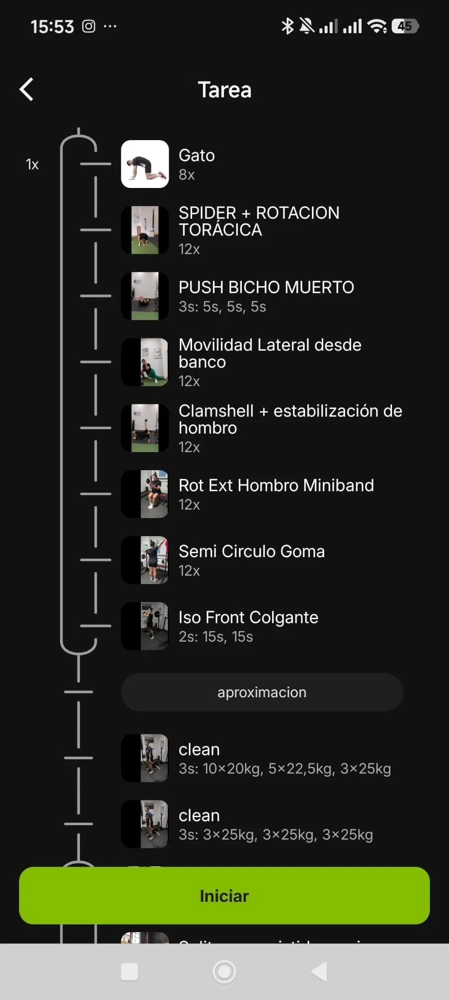 Cada ejercicio incluye un vídeo demostrativo para que puedas ver la técnica correcta antes de realizarlo.